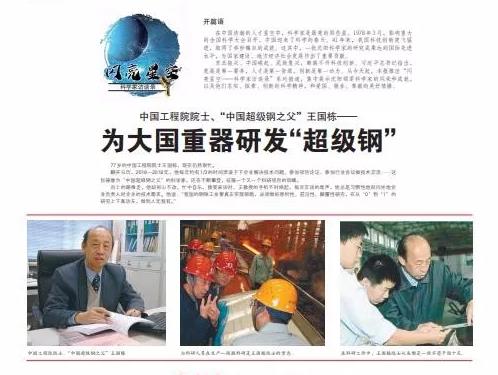 在國家“973”項(xiàng)目的支持下,與全國鋼鐵人一起研發(fā)超級鋼時(shí),王國棟帶領(lǐng)著團(tuán)隊(duì)在東北大學(xué)軋制技術(shù)及連軋自動化國家重點(diǎn)實(shí)驗(yàn)室和寶鋼之間往來奔波,不但先于國外競爭者完成了200兆帕(MPa)級別普碳鋼到400兆帕的科學(xué)研究,實(shí)現(xiàn)了強(qiáng)度的翻番,還提前近3年時(shí)間生產(chǎn)出原型鋼,并進(jìn)行了實(shí)際應(yīng)用。2004年,“400MPa級鐵素體/珠光體鋼的超細(xì)晶強(qiáng)韌化與控制技術(shù)”獲得國家科學(xué)技術(shù)進(jìn)步一等獎。